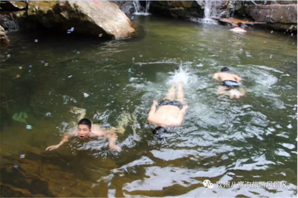 欽州的八寨溝與四川的九寨溝一樣,都具有豐饒的水源,異常清澈,天然原生態(tài),均為未遭到現(xiàn)代文明入侵和污染的圣潔凈土。也許是八寨溝的水都發(fā)自十萬大山的深處吧,匯聚著眾多的山泉沿著溝壑奔騰而下,一路隨心翻浪,一路高亢歡歌,從而在長年的沖擊中形成了大大小小的泉潭,并且順著山勢形成了不少或大或小的瀑布。