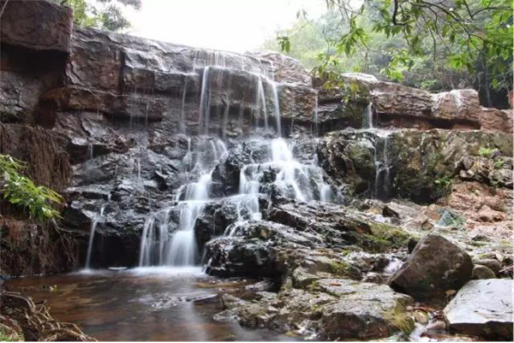 走進(jìn)山林200多米左右,我們便到達(dá)了牛郎織女橋。清澈的溪流,依稀可見魚兒在追逐嬉戲;徐徐山風(fēng)的吹過,更使人感到神清氣暢。要不是前面有更好的美景吸引著,我們真想就駐足在這里,投身于她的懷抱之中了??邕^牛郎織女橋,道路開始變得崎嶇,樹林也越來越茂密,雜花生樹,綠葉蔽日,使得原本并不見得寬的道路顯得更加狹小。 道路旁,一邊是林羅分布著的鐵柃格、湖榕木等數(shù)十種珍稀樹種,以及金銀花、黃杞子、枸骨藤等上百種珍稀藥材,另一邊則是清清的泉水時而從石板上匯成瀑布,時而從石隙間潺潺流過,景色十分誘人。