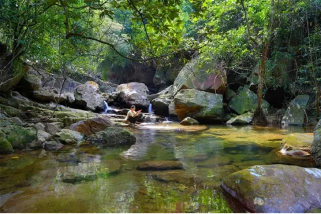 每個石潭不僅都有著美麗的名字,比如阿蘭灘、日月潭、將軍潭等等,而且每個石潭都仿佛是一個天然浴池,大的深達(dá)三、四米,可容上百人同時戲水;小的如浴盆,只容一兩人入浴。尤其是“仙女池”,更是一個盤踞其中的天然浴池,清清的水面上常?;\罩著一層淡淡的水霧,平添幾分神秘。