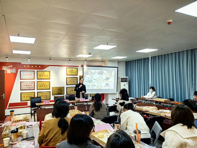 授課過程中,講師還為女職工設(shè)置了中醫(yī)文化體驗(yàn)環(huán)節(jié)。專業(yè)的中醫(yī)養(yǎng)生教練身著傳統(tǒng)服飾,身姿矯健地站在前方,為女職工們示范八段錦的標(biāo)準(zhǔn)動(dòng)作。“雙手托天理三焦,左右開弓似射雕……” 教練一邊口中念念有詞,一邊緩緩展示著一招一式,動(dòng)作行云流水、剛?cè)嵯酀?jì)。練習(xí)過程中,女職工們屏氣斂息,專注于每一個(gè)動(dòng)作的細(xì)節(jié),感受著身體的拉伸與舒展,仿佛在一招一式間與古老的中醫(yī)養(yǎng)生智慧對話。八段錦不僅讓女職工們體驗(yàn)到傳統(tǒng)健身方式的魅力,更在動(dòng)靜結(jié)合中舒緩了身心壓力,調(diào)節(jié)了氣息。許多女職工表示,練習(xí)完八段錦后,身體微微發(fā)熱,整個(gè)人都神清氣爽,仿佛充滿了能量。
