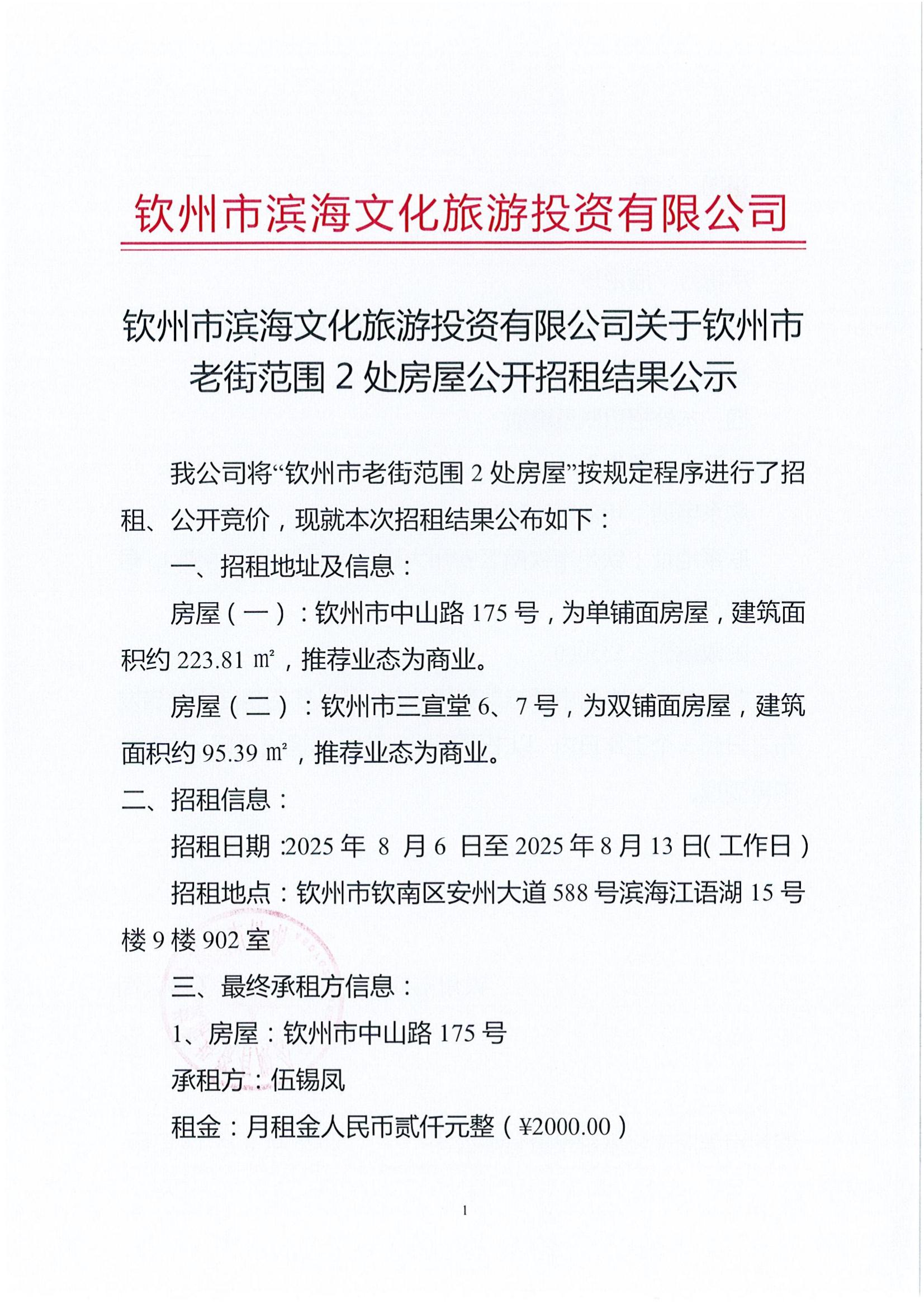 關(guān)于欽州市老街范圍2處公房公開(kāi)招租結(jié)果公示