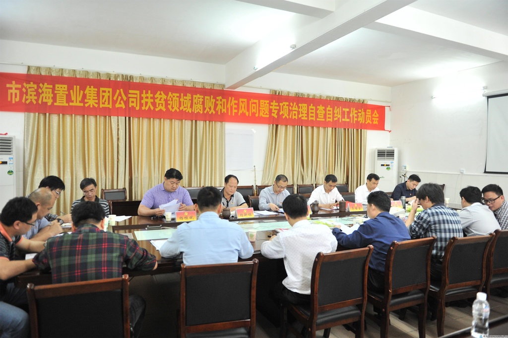 會議現(xiàn)場 近日,為全面貫徹落實中央、自治區(qū)和市關(guān)于打贏脫貧攻堅的工作要求,市濱海置業(yè)集團公司召開了扶貧領(lǐng)域腐敗和作風(fēng)問題專項治理自查自糾工作動員會議,對進一步做好扶貧領(lǐng)域腐敗和作風(fēng)問題專項治理進行全面部署。 會議要求,黨員干部要充分認(rèn)識專項治理自查自糾工作的重要意義,主動履職盡責(zé),切實加強責(zé)任感和緊迫感,深入貫徹黨的十九大關(guān)于脫貧攻堅工作部署,結(jié)合集團公司工作實際,推動專項治理工作的落實。壓實主體責(zé)任,切實提高政治站位,進一步增強“四個意識”,強化責(zé)任擔(dān)當(dāng),找實抓牢主體責(zé)任,加強組織領(lǐng)導(dǎo),堅決防止在集團公司和扶貧點村出現(xiàn)扶貧領(lǐng)域腐敗和作風(fēng)問題發(fā)生。進一步做好糾正“四風(fēng)”深化作風(fēng)建設(shè)工作,推動黨員干部主動改進作風(fēng),把心思和精力用在脫貧攻堅事業(yè)上,營造良好政治生態(tài),確保集團公司脫貧攻堅工作順利完成。