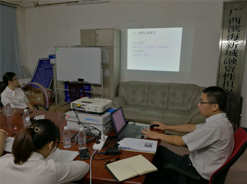 為規(guī)范公司員工的業(yè)務辦理流程,學習和鞏固擔保行業(yè)相關(guān)法律知識,2019年10月23日,廣西濱海新城融資擔保有限公司組織全體員工進行了擔保行業(yè)相關(guān)法律知識的學習。本次內(nèi)部培訓會由執(zhí)行董事阮經(jīng)欽主持、楊運德總經(jīng)理主講,重點解讀了《中華人民共和國擔保法》、《融資擔保公司監(jiān)督管理條例》及四項配套制度等法律法規(guī)文件。