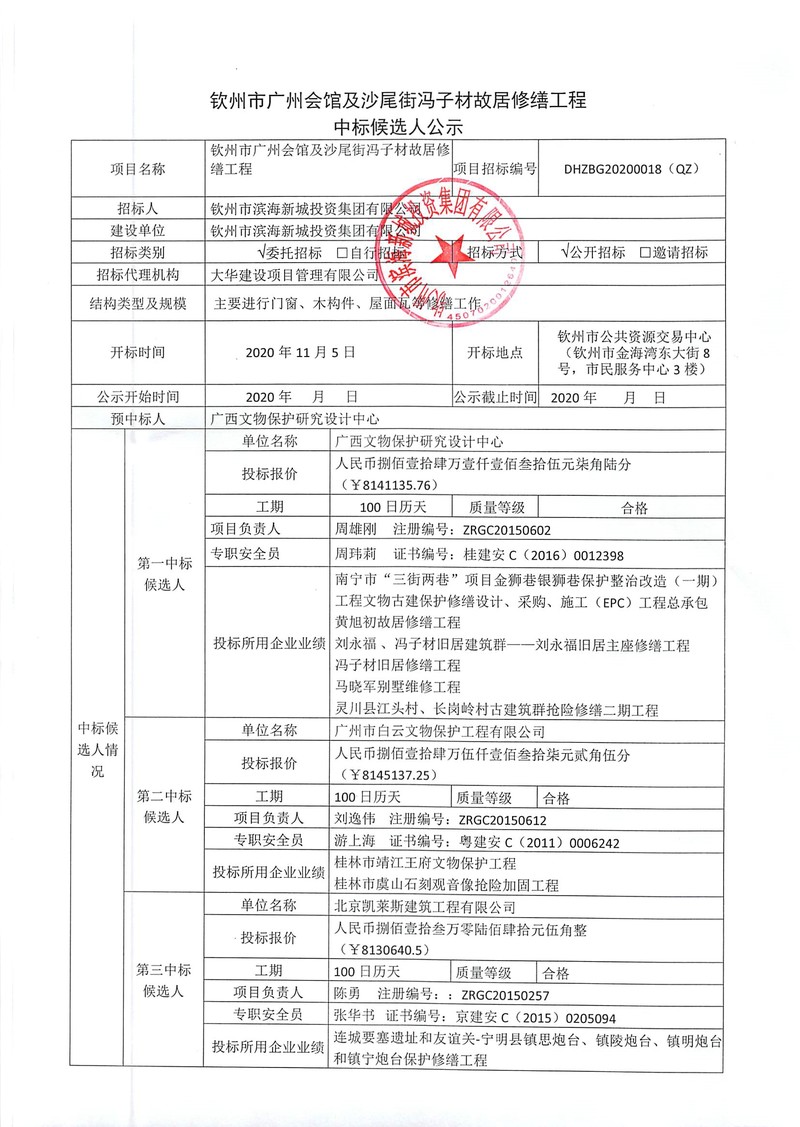 項(xiàng)目名稱 欽州市中山路、占鰲巷旅游開發(fā)項(xiàng)目(一期)設(shè)計(jì) 項(xiàng)目招標(biāo)編號(hào) DHZBG20200008(QZ) 招標(biāo)人 欽州市濱海新城投資集團(tuán)有限公司 建設(shè)單位 欽州市濱海新城投資集團(tuán)有限公司 招標(biāo)類別 ...