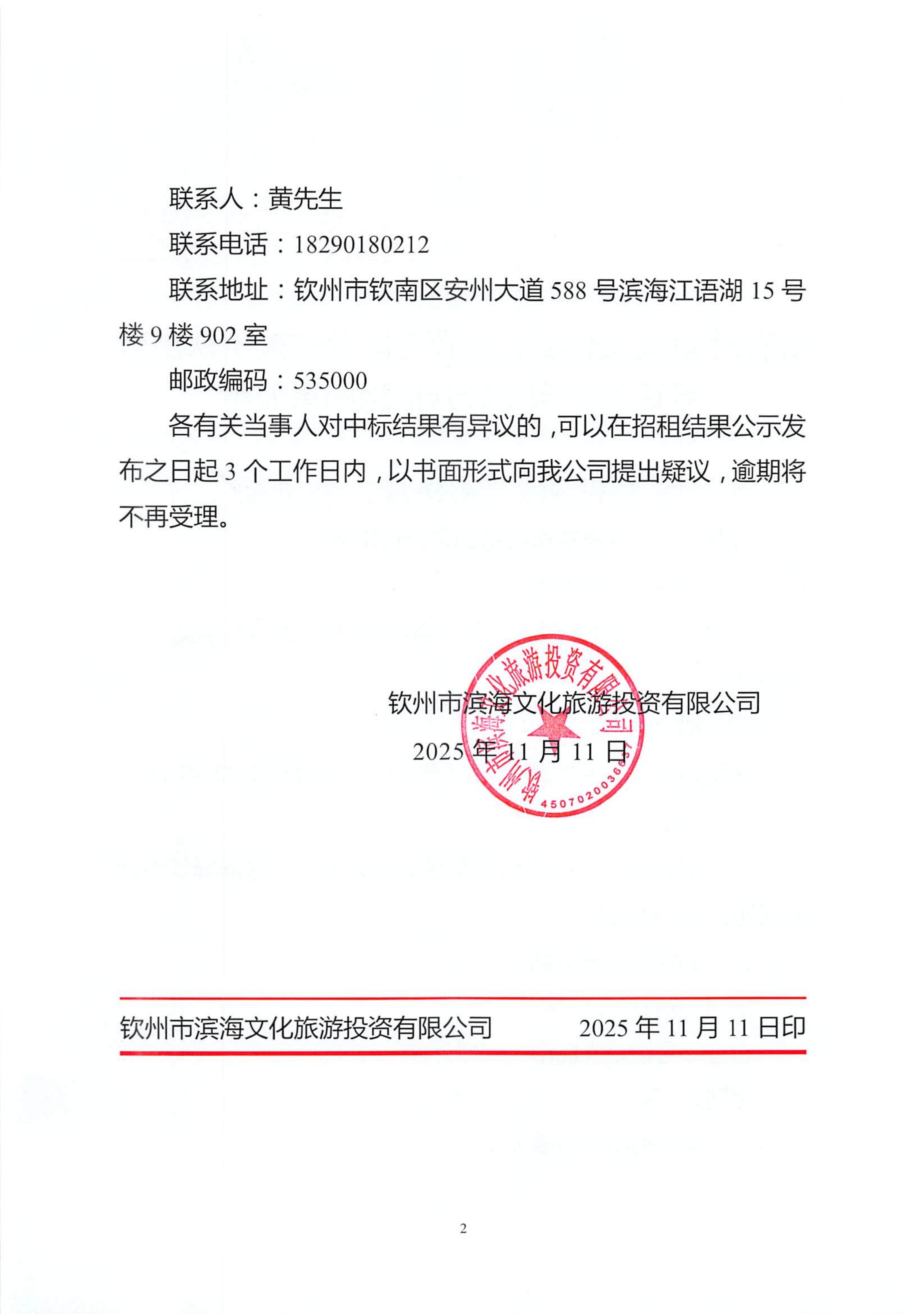 欽州市濱海文化旅游投資有限公司關于欽州市老街范圍房屋公開招租結果公示(欽州市中山路112號)