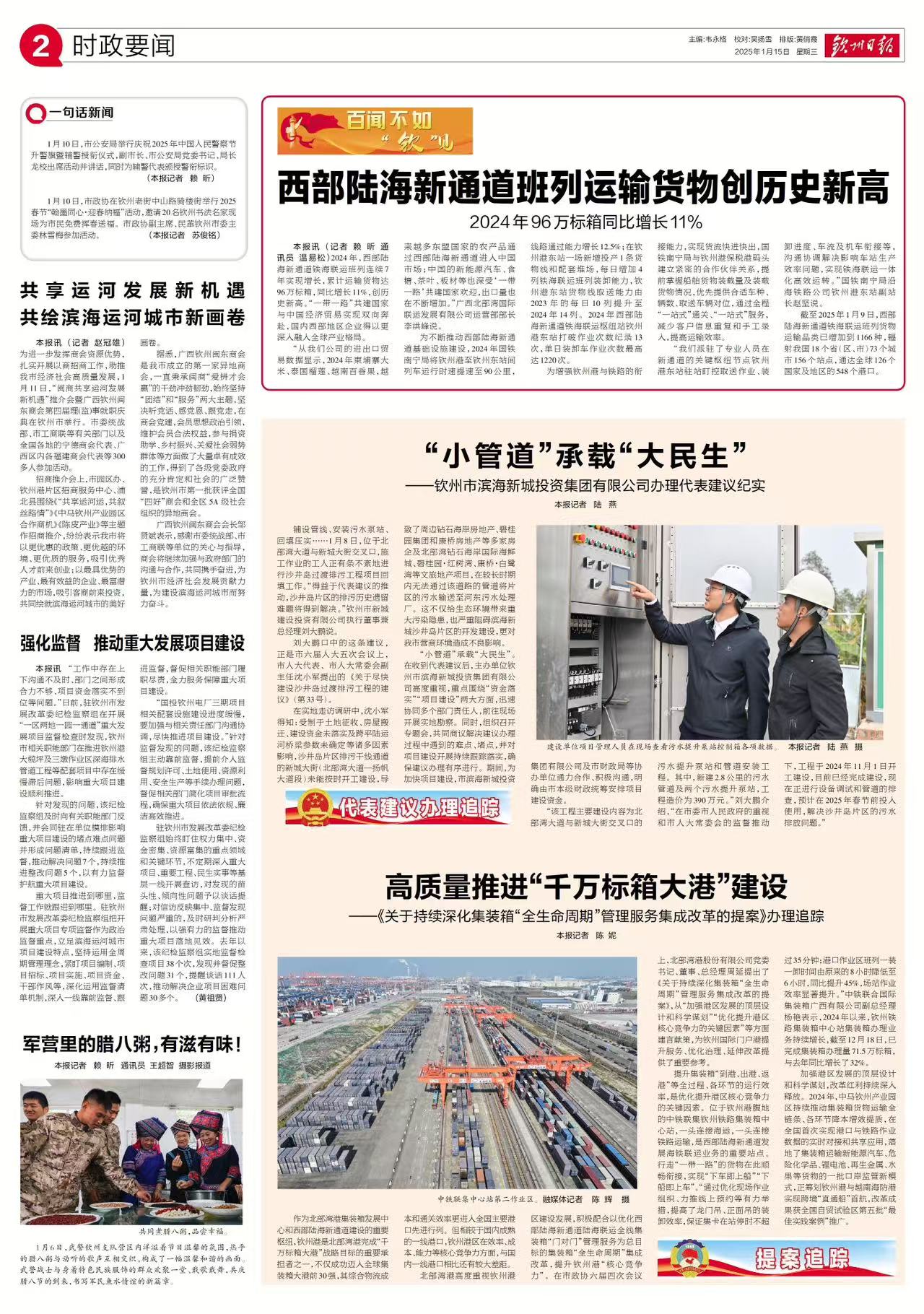 1月15日,《欽州日報》以《“小管道”承載“大民生”》為題報道欽州市濱海新城投資集團(tuán)有限公司辦理代表建議紀(jì)實。全文如下。         鋪設(shè)管線,安裝污水泵站、回填壓實……1月8日,位于北部灣大道與新城大街交叉口,施工作業(yè)的工人正有條不紊地進(jìn)行...