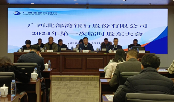 2024年1月25日,廣西北部灣銀行股份有限公司2024年第一次臨時(shí)股東大會在廣西北部灣銀行總行4樓406報(bào)告廳順利召開。此次會議由廣西北部灣銀行股份有限公司董事會召集,黎棟國董事長主持。廣西投資集團(tuán)金融控股有限公司、巨人投資有限公司、廣西出版?zhèn)髅郊瘓F(tuán)有限公司及欽州市濱海新城投資集團(tuán)有限公司等股東及股東代理人出席會議。