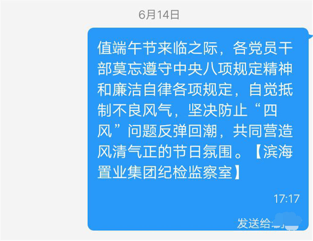 在2018年端午節(jié)來臨之際,由集團公司紀檢監(jiān)察室通過手機短信、微信及QQ等方式多措并舉向集團公司全體中層以上領導干部及全體黨員發(fā)出了廉政提醒信息。提醒黨員干部...