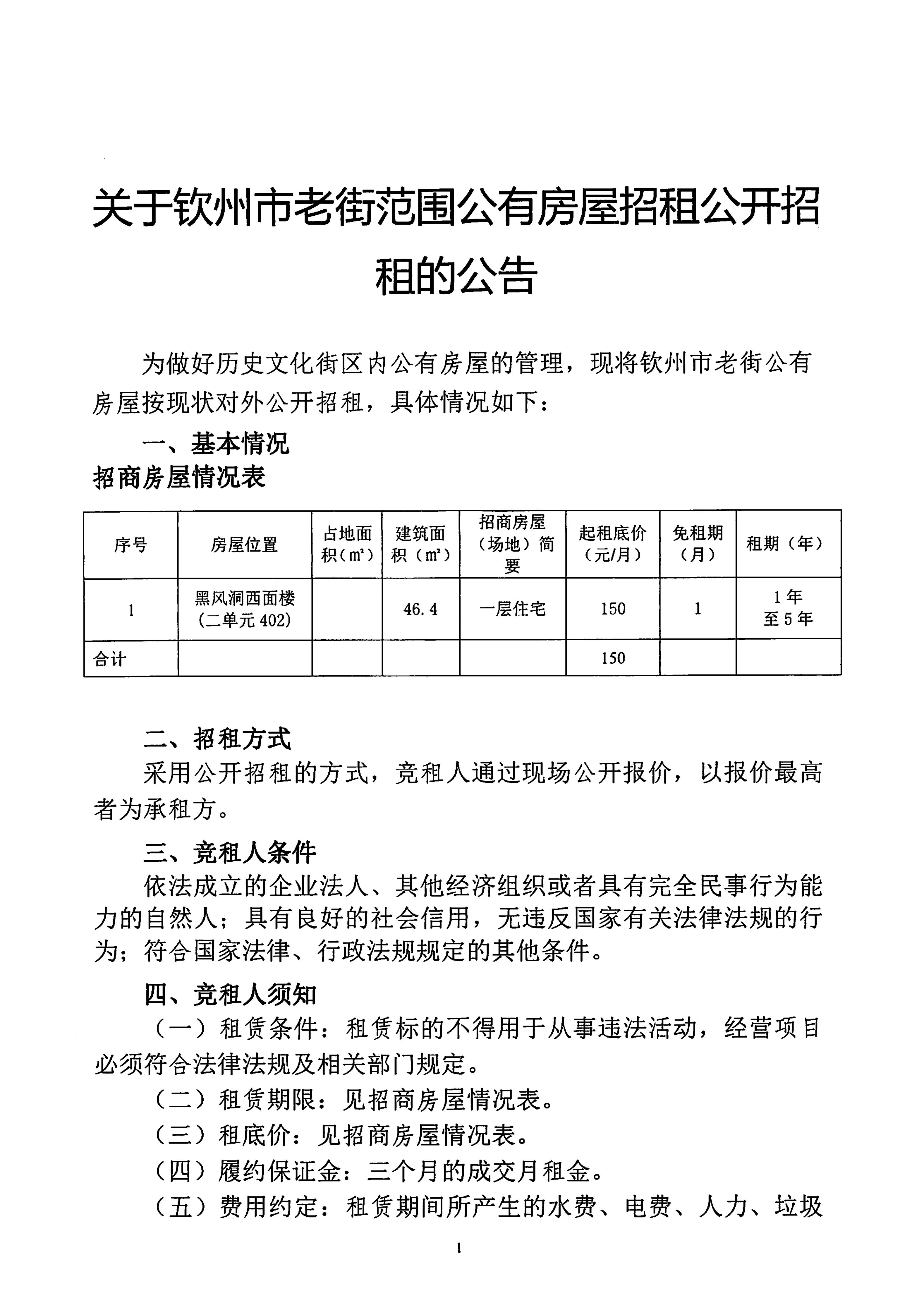關(guān)于欽州市老街范圍公有房屋招租公開招租的公告(黑風洞西面樓二單元402)