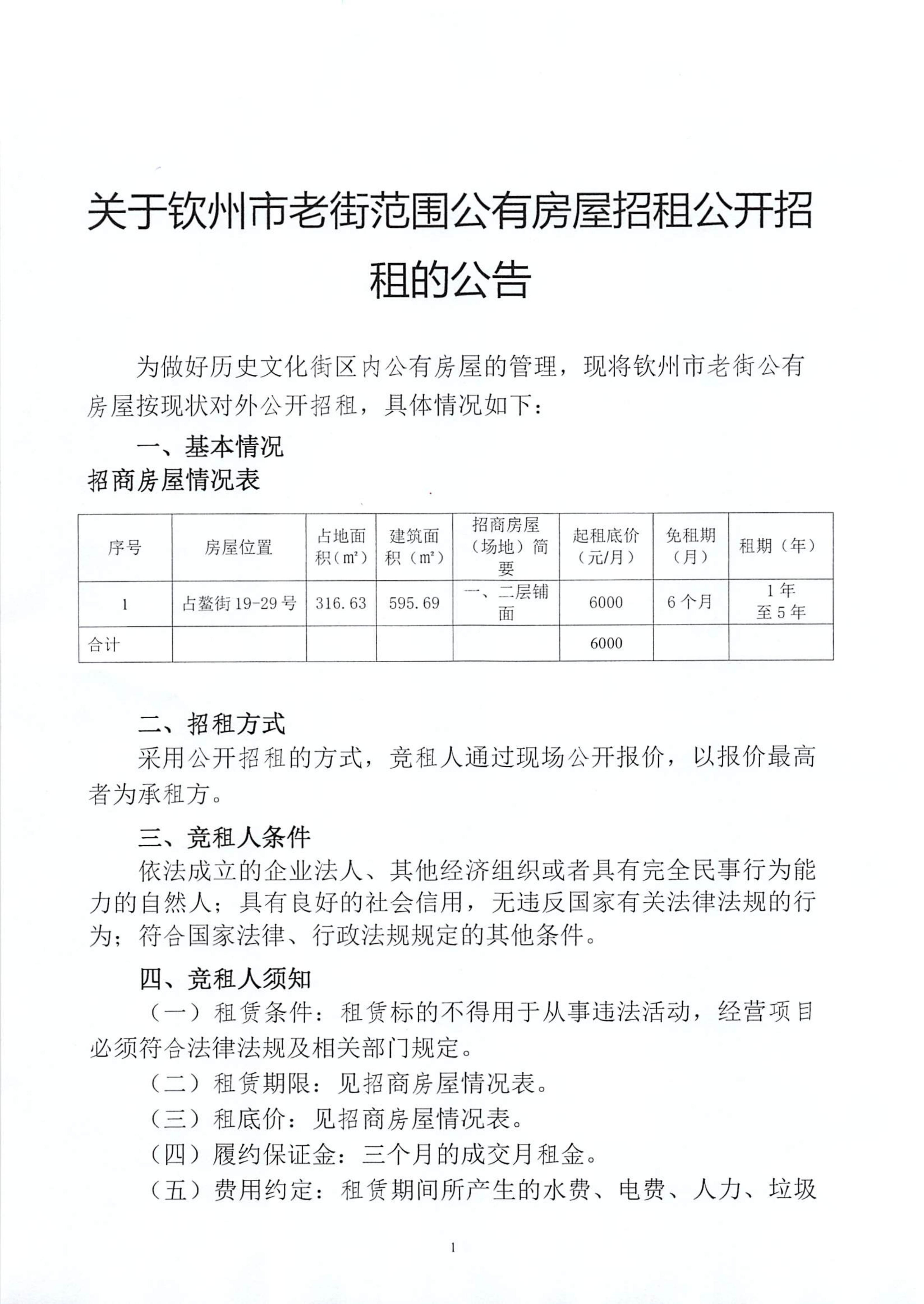關(guān)于欽州市老街范圍公有房屋招租公開招租的公告
