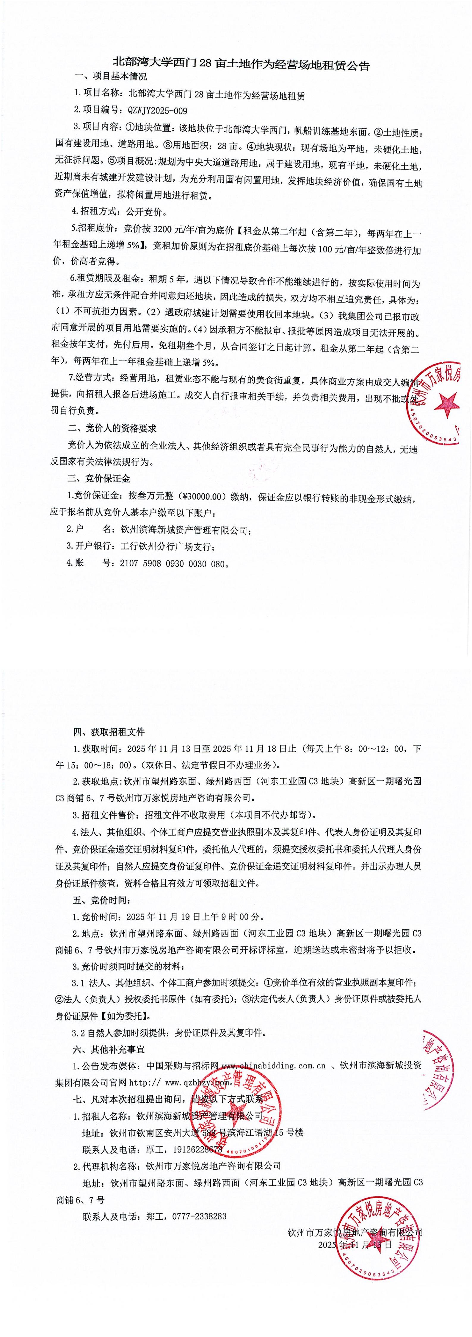 北部灣大學西門28畝土地作為經(jīng)營場地租賃公告