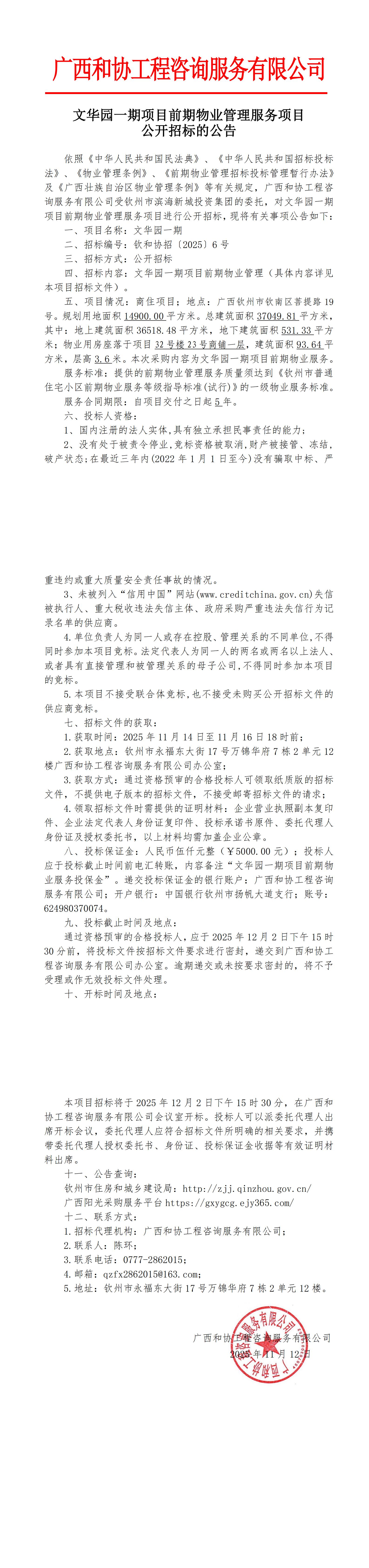 文華園二期項目前期物業(yè)管理服務(wù)項目公開招標的公告