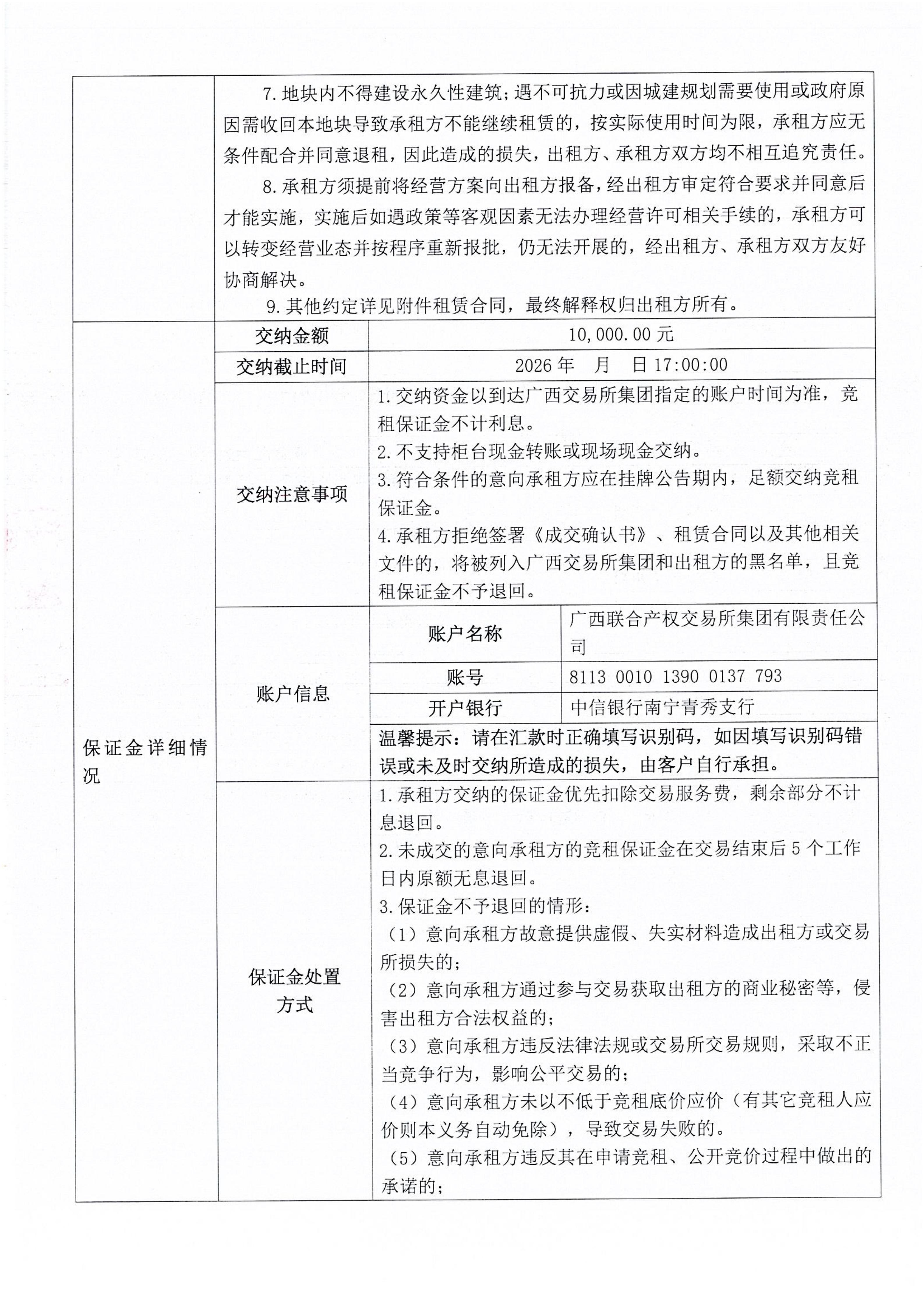 欽州市濱江東路與嘉興街3畝經(jīng)營場地公開招租項目